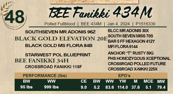 BEE Fanikki 434M - Polled - AI’ed Apr 5, 2025 to BEE Intrepid 111L Reg# 1453495. Exposed to Eagle Ridge Maverick 9M – Reg# 1497274 from Apr 10,2025 to May 22,2025. Ultrasounded 35 days to exposure on June 6, 2025. Approximate due date: Feb 11, 2026