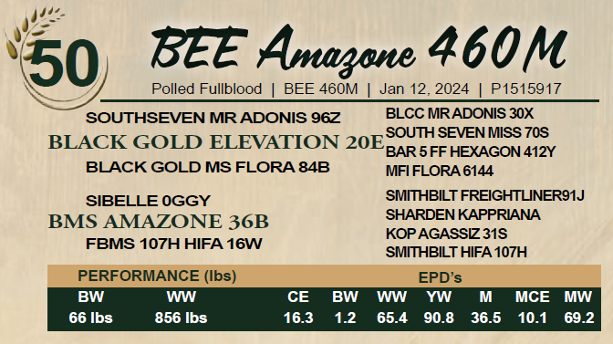BEE Amazone 460M - Dilutor Free - AI’ed Apr 3, 2025 to BEE Steady Eddy 82L Reg# 1479817. Exposed to Eagle Ridge Mavrick 9M – Reg# 1497274 from Apr 10,2025 to May 22, 2025. Ultrasounded safe to AI on May 22, 2025. Approximate due date: Jan 13, 2026