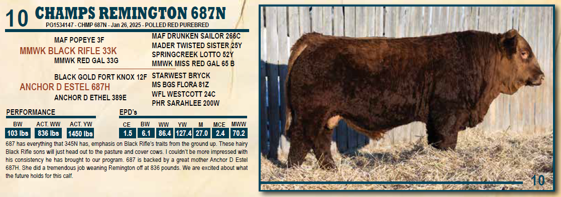CHAMPS REMINGTON 687N - POLLED RED PUREBRED