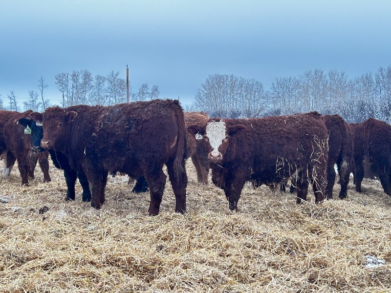 | General Comments: | Back to the north country for another good load of steers from Chris Bartel! This group is made up of home-raised cattle and cattle bought from local ranchers. Lots of frame and stretch in these Simm X feeding machines! The cattle have done well through the cold months, but they are not over fed. As always, these late February delivery steers are priced delivered anywhere in Alberta! ANRP. +/- with sort to fill the load. |