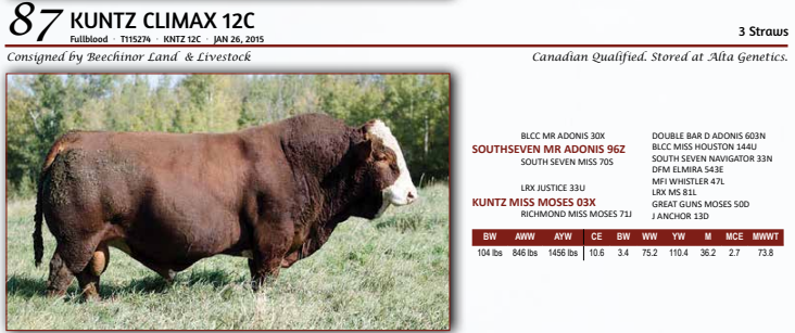 KUNTZ CLIMAX 12C - 3 Straws - Canadian Qualified. Stored at Alta Genetics
