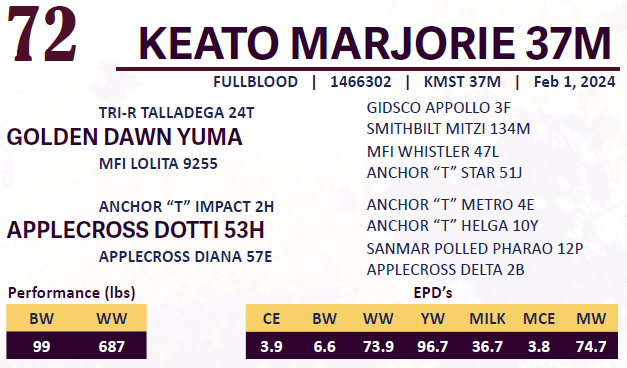 KEATO MARJORIE 37M - 100% FLECKVIEH - AI’d to VIRGINIA RADISON 5Z (Reg 773557) April 14th 2025 Exposed to HANSOLO 56H (Reg 1363638) from April 16th – May 24th 2025 Observed bred April 25th 2025