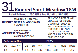 Kindred Spirit Meadow 18M - 100% Fleckvieh. Heterozygous Polled. - Exposed to Anchor D Fabulous April 4, 2025. Preg checked July 10th; 50 days pregnant.