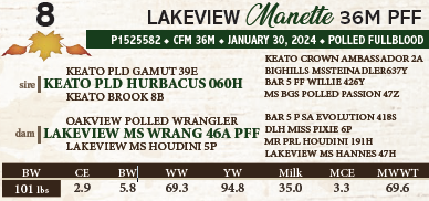 POLLED FULLBLOOD - Exposed to DESS CAN AM from April 4 to May 4, 2025, then exposed to