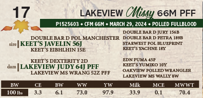 CATTLE PICTURES AND INFORMATION PROVIDED - The images in this catalogue are believed to be accurate representations of the individual animals and the information contained in this catalogue is provided by the seller and believed to be true and accurate. Transcon Livestock Corp. and catalogue designers/producers assume no responsibility if the images and/or information as received have been altered or is inaccurate.