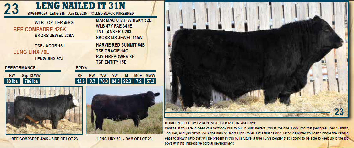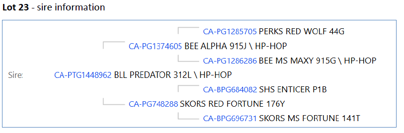 ***PLEASE NOTE THE SIRE HAS CHANGED FROM THE PRINTED CATALOG TO BLL PREDATOR 312L AND THE NEW SIRE PEDIGREE IS SHOWN***