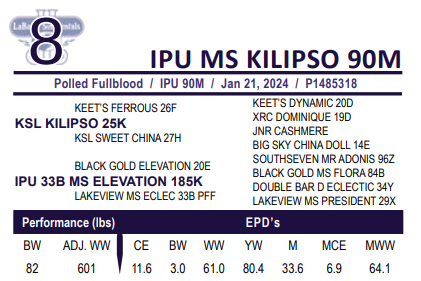IPU MS KILIPSO 90M - Polled/Scurred Fullblood - Diluter Test Pending - Bred: Mar 31st – Kuntz North Star 15L CSA #1457977 Exposed to same May 2 to June 2, Safe to A.I
