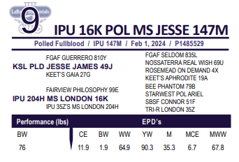 IPU 16K POL MS JESSE 147M - Hetero Polled. Diluter Free Fullblood. - Bred: March 31st – Kuntz North Star 15L CSA #1457977 Exposed to same May 2 to June 2, safe to A.I.