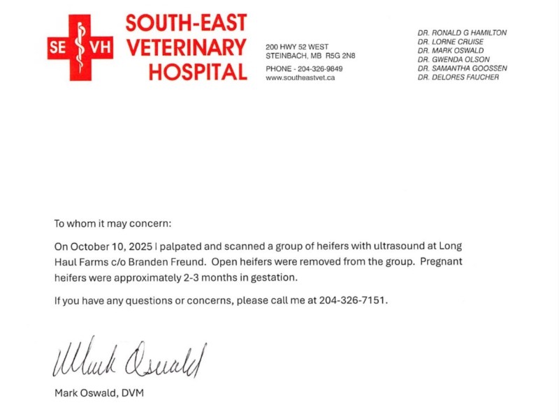 | Location of Cattle: | Steinbach, MB |