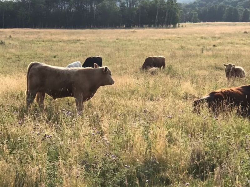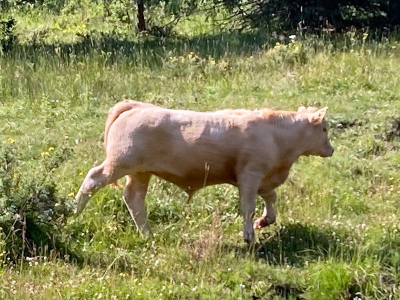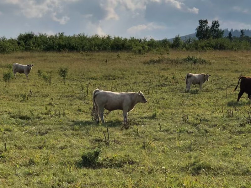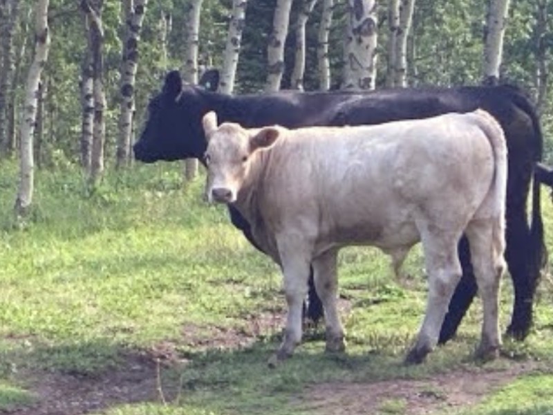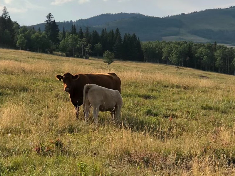 | Feeding Program: | 60% silage, 23% barley, 15% straw, 2% supplement. Weaned end of September off high Foothills grass. |