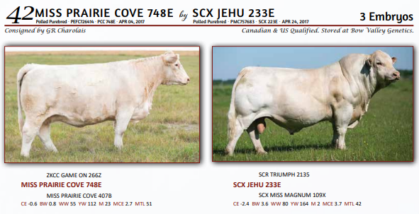 MISS PRAIRIE COVE 748E by SCX JEHU 233E - 3 Embryos - Canadian & US Qualified. Stored at Bow Valley Genetics. GUARANTEE - ONE PREGNANCY IF IMPLANTED BY CERTIFIED TECHNICIAN.