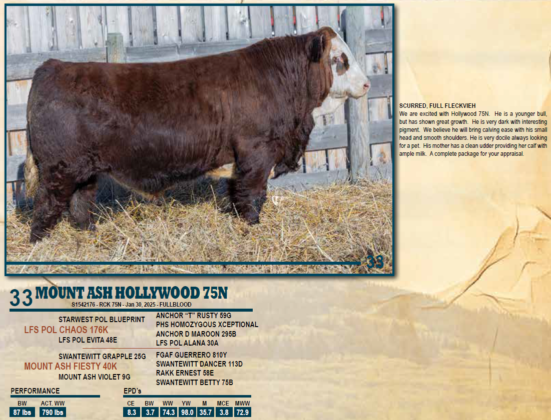 MOUNT ASH HOLLYWOOD 75N - SCURRED, FULL FLECKVIEH