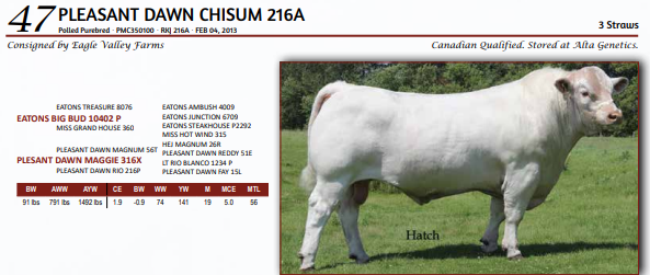PLEASANT DAWN CHISUM 216A - 3 STRAWS - Canadian Qualified. Stored at Alta Genetics