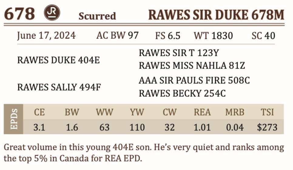 Great volume in this young 404E son. He’s very quiet and ranks among the top 5% in Canada for REA EPD.