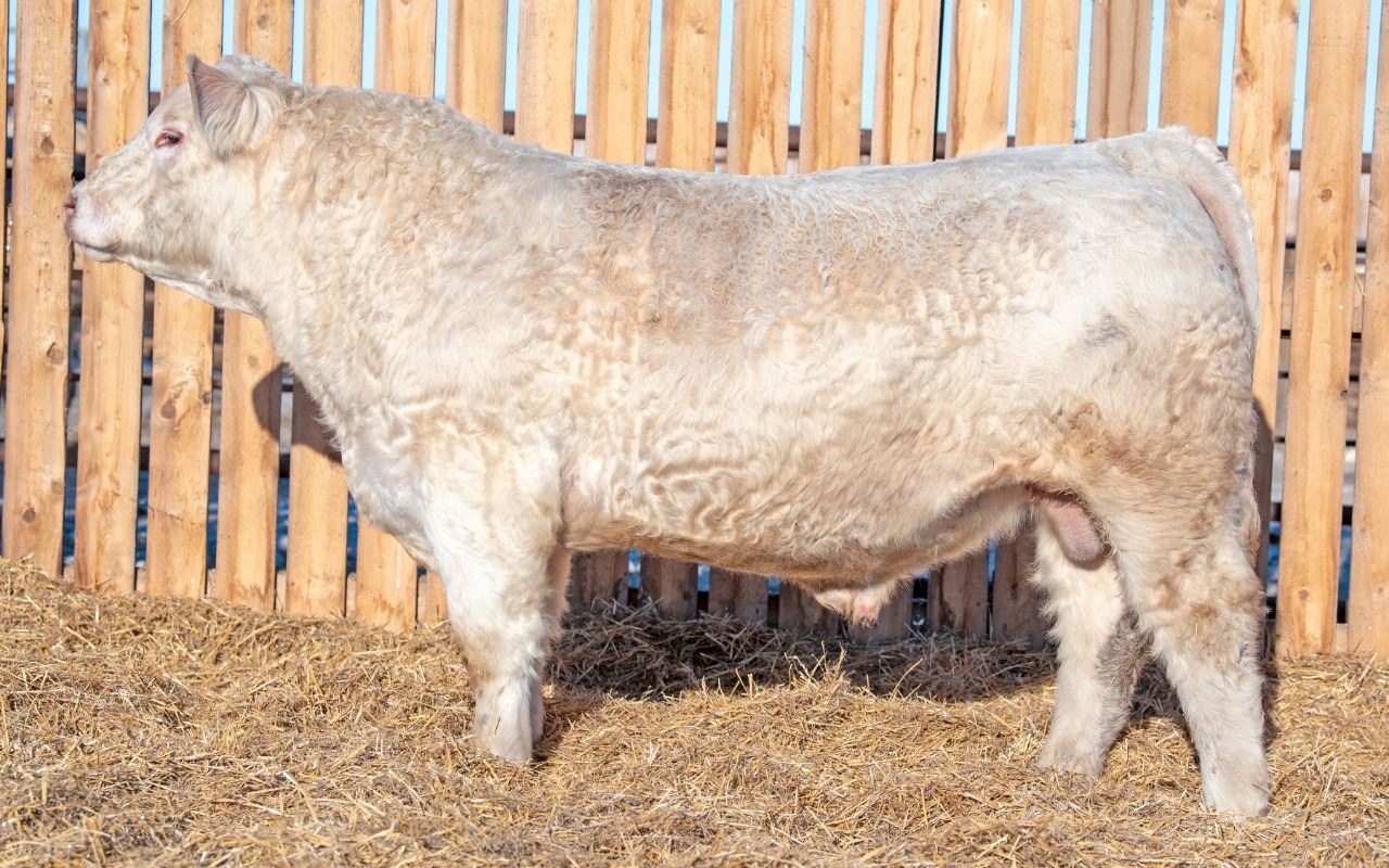 Very correct & thick made, out of a Platinum dam. A little higher birthweight, but by no means extreme for a mature cow. WADG index is 130%