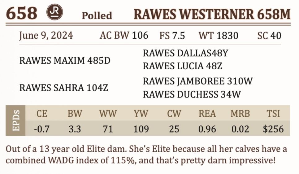 Out of a 13 year old Elite dam. She’s Elite because all her calves have a combined WADG index of 115%, and that’s pretty darn impressive!