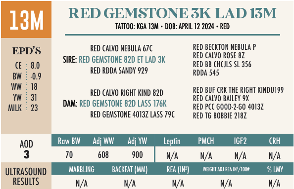 TATTOO: KGA 13M | DOB: APRIL 12 2024 | RED