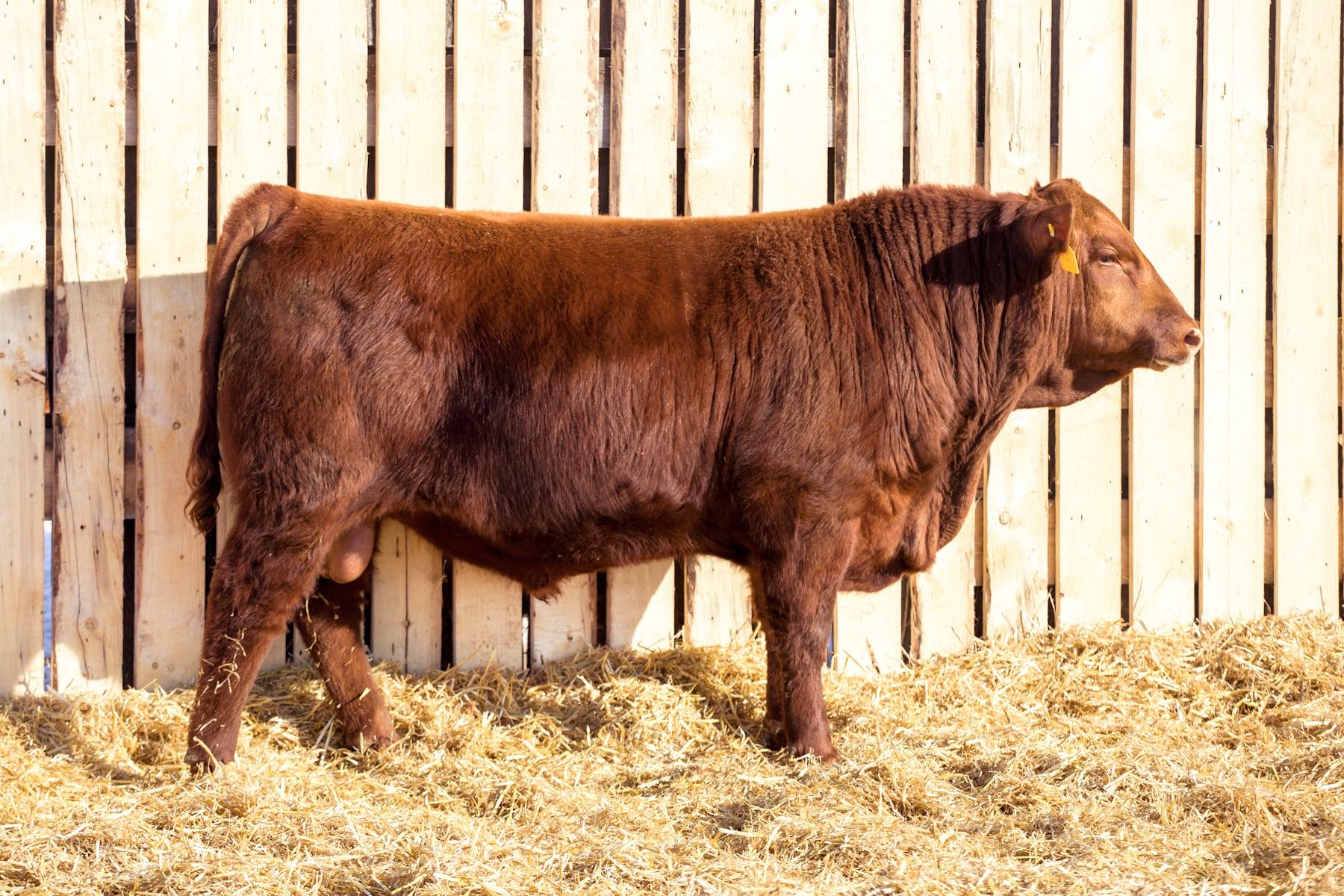 It was exciting watching 23N grow up! He’s always had lots of hip and one of the deepest flanks in the pen. Out of one of our favorite red cow lines! Maternal brother sold to Twisted T Cattle Co.