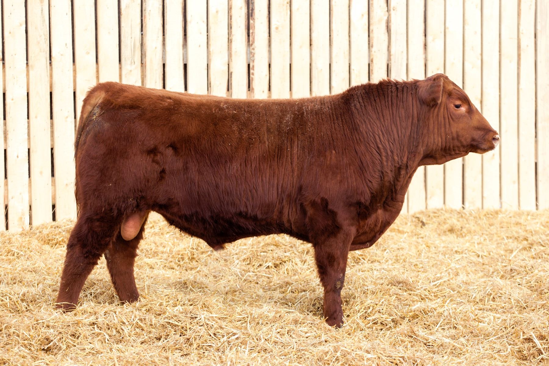 39N is a real unique bull. He’s one that’ll catch your eye and make you head over to have a second look. His length of spine, deep cherry red color and huge scrotal will make him one to watch on sale day. His maternal sister raised lot 3.