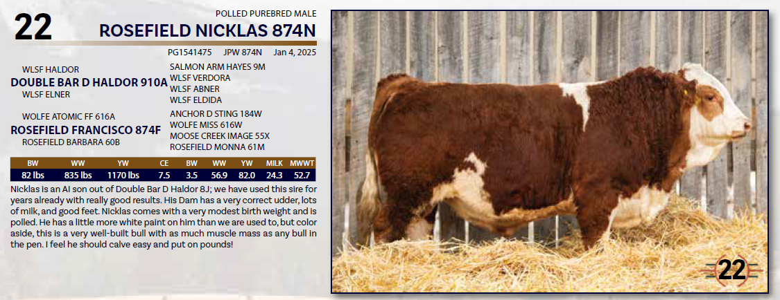 ROSEFIELD NICKLAS 874N - POLLED PUREBRED