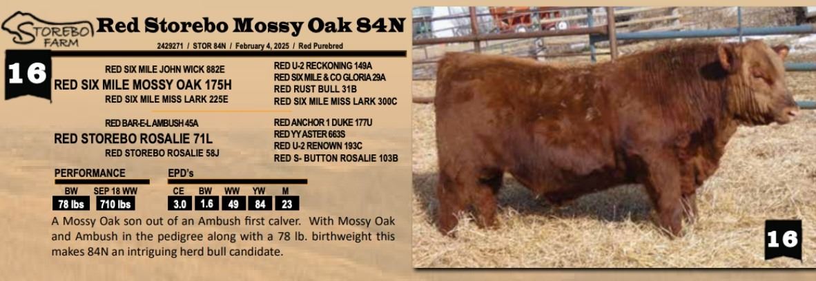 A Mossy Oak son out of an Ambush first calver. With Mossy Oak and Ambush in the pedigree along with a 78 lb. birthweight this makes 84N an intriguing herd bull candidate.