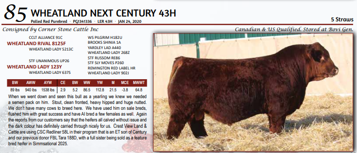 WHEATLAND NEXT CENTURY 43H - 5 Straws - Canadian & US Qualified. Stored at Bovi Gen