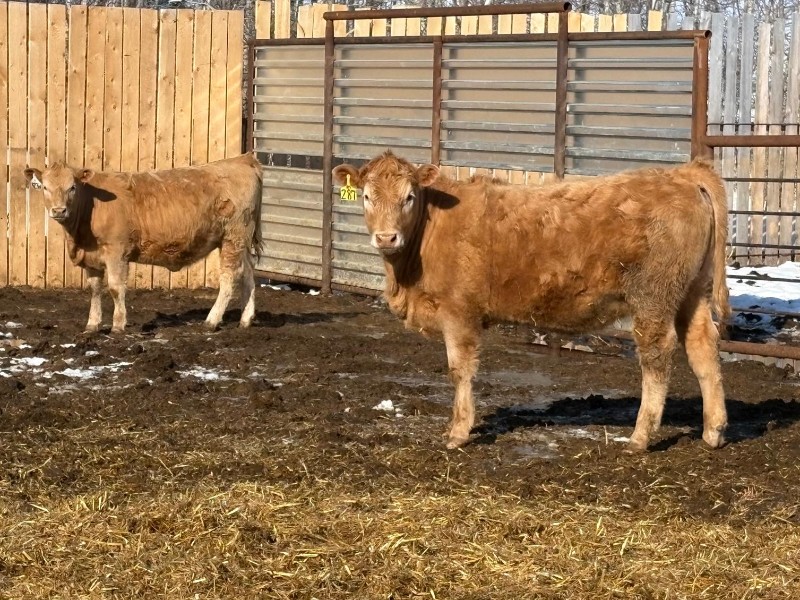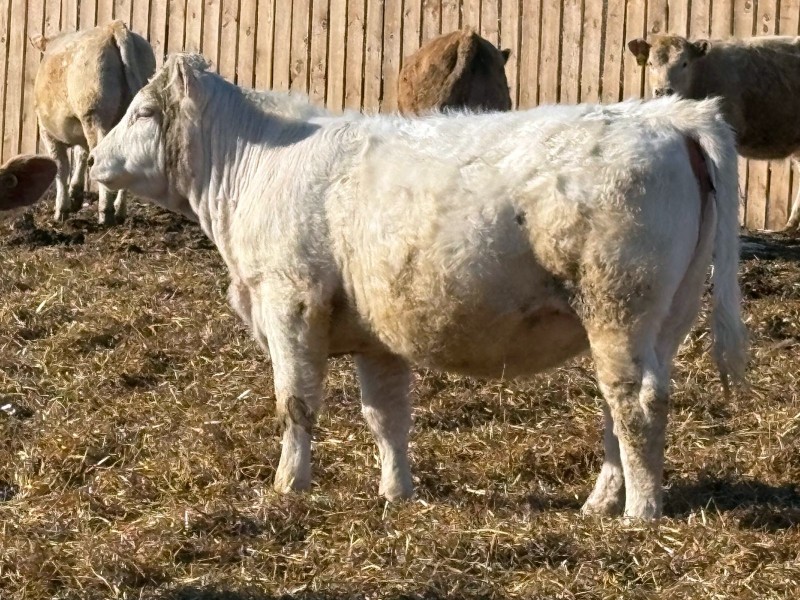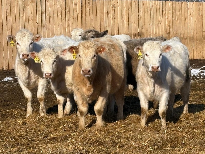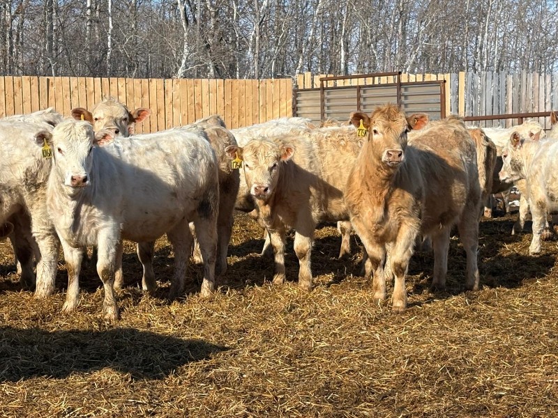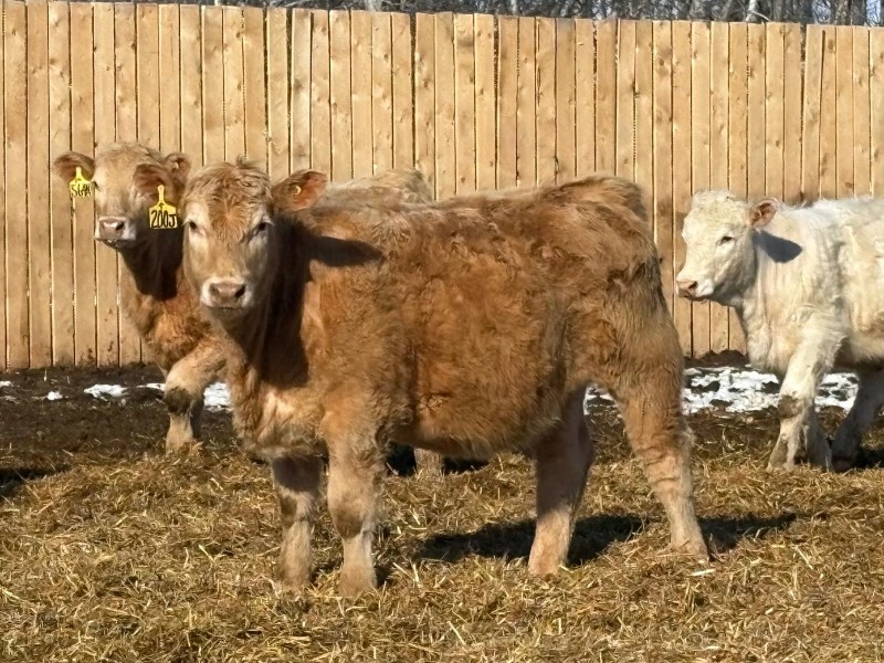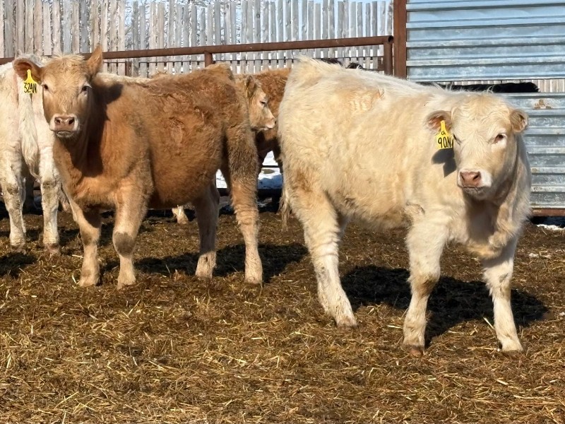 | General Comments: | Very good, lighter-fleshed, clean, quiet disposition crossbreds with hair, capacity & muscle! Mid sort from 500 Char X heifers from this reputation ranch! By Steppler, Beck & Sparrow Charolais bulls out of home-raised Red Angus, RA x Sim, RA x Char & tan cows, Bonchuk & High Bluff Simmental bulls, Moose Creek Red Angus bulls on home-raised white Char cows. Developed right to perform on grass or feed & on the rail. (700+ heifers born in '25). All weighed March 21st, pictures and videos taken Monday. Have a look and don't miss these! |