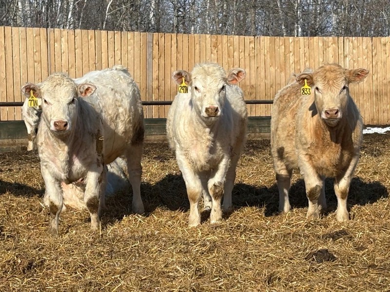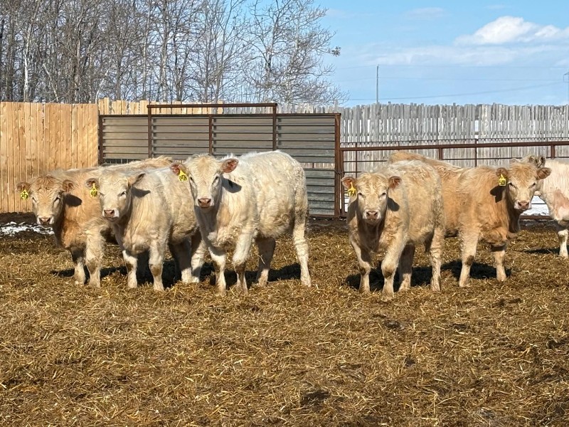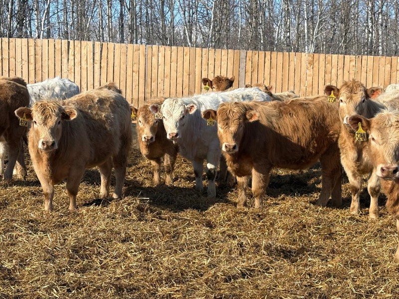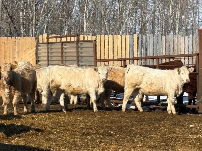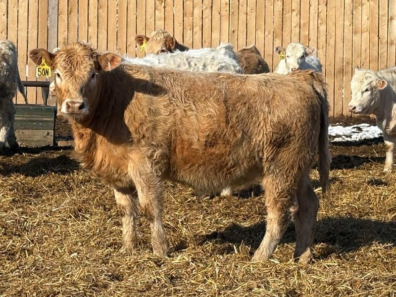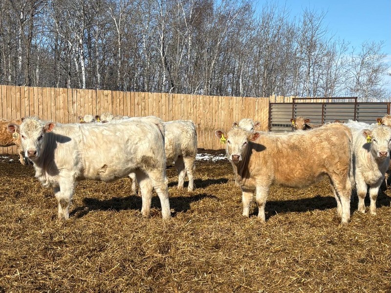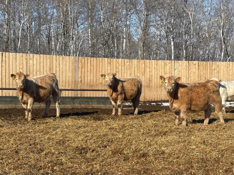 | General Comments: | Very good, lighter-fleshed, clean, quiet disposition crossbreds with hair, capacity & muscle! Mid sort from 500 Char X heifers from this reputation ranch! By Steppler, Beck & Sparrow Charolais bulls out of home-raised Red Angus, RA x Sim, RA x Char & tan cows, Bonchuk & High Bluff Simmental bulls, Moose Creek Red Angus bulls on home-raised white Char cows. Developed right to perform on grass or feed & on the rail. (700+ heifers born in '25). All weighed March 21st, pictures and videos taken Monday. Have a look and don't miss these! |