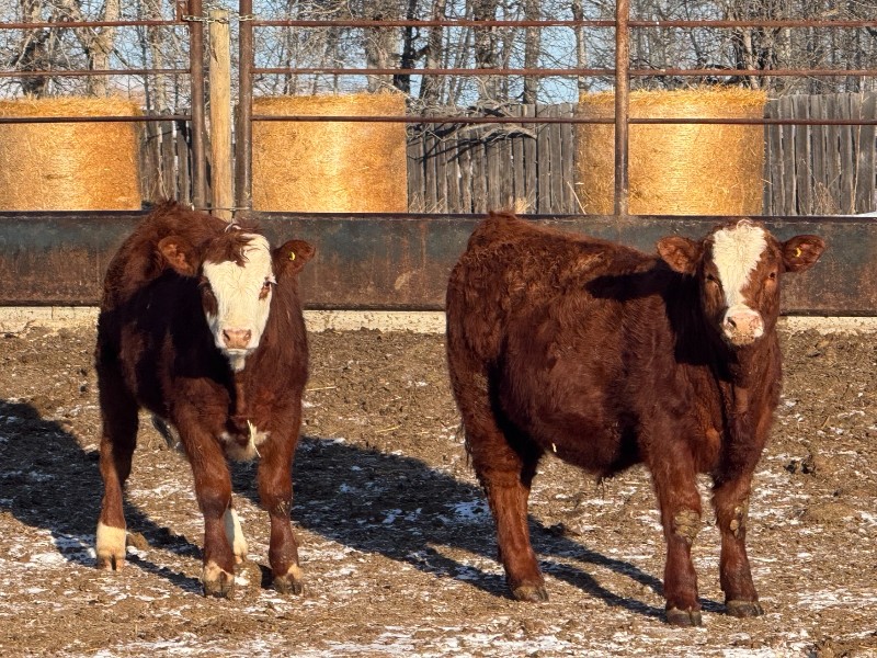 | General Comments: | Selling 2 loads of the top cut of 220 flashy home-raised steers! Big growthy Simmentals that have not been pushed gaining 1.9 lbs/day since weaning October 20th. Will hold back the few blacks and couple horns, leaving a nice package of red hided steers. Following a thorough vaccination program, these steers have had next to zero health issues. Flexible load size. ANRP. +/- |